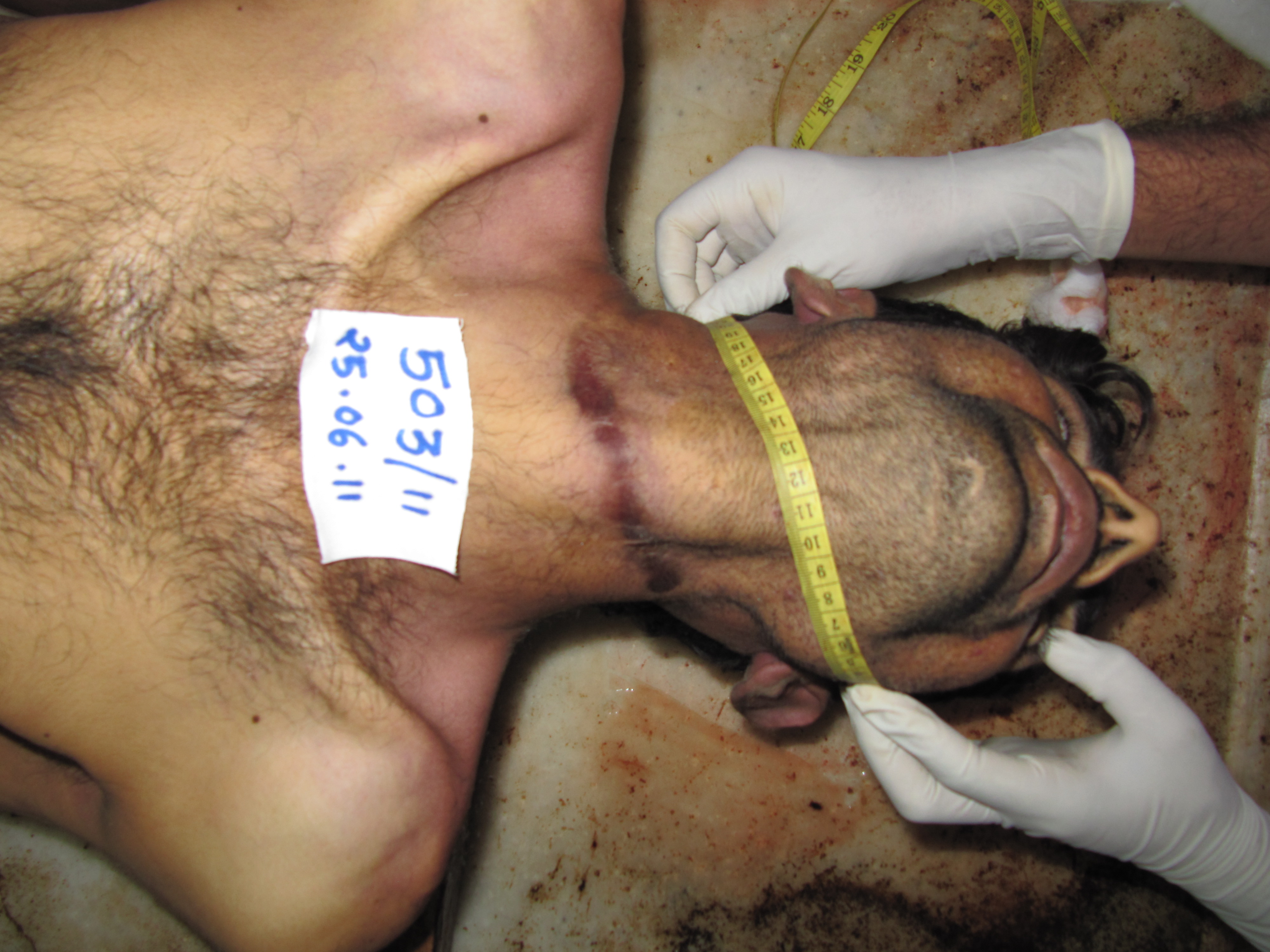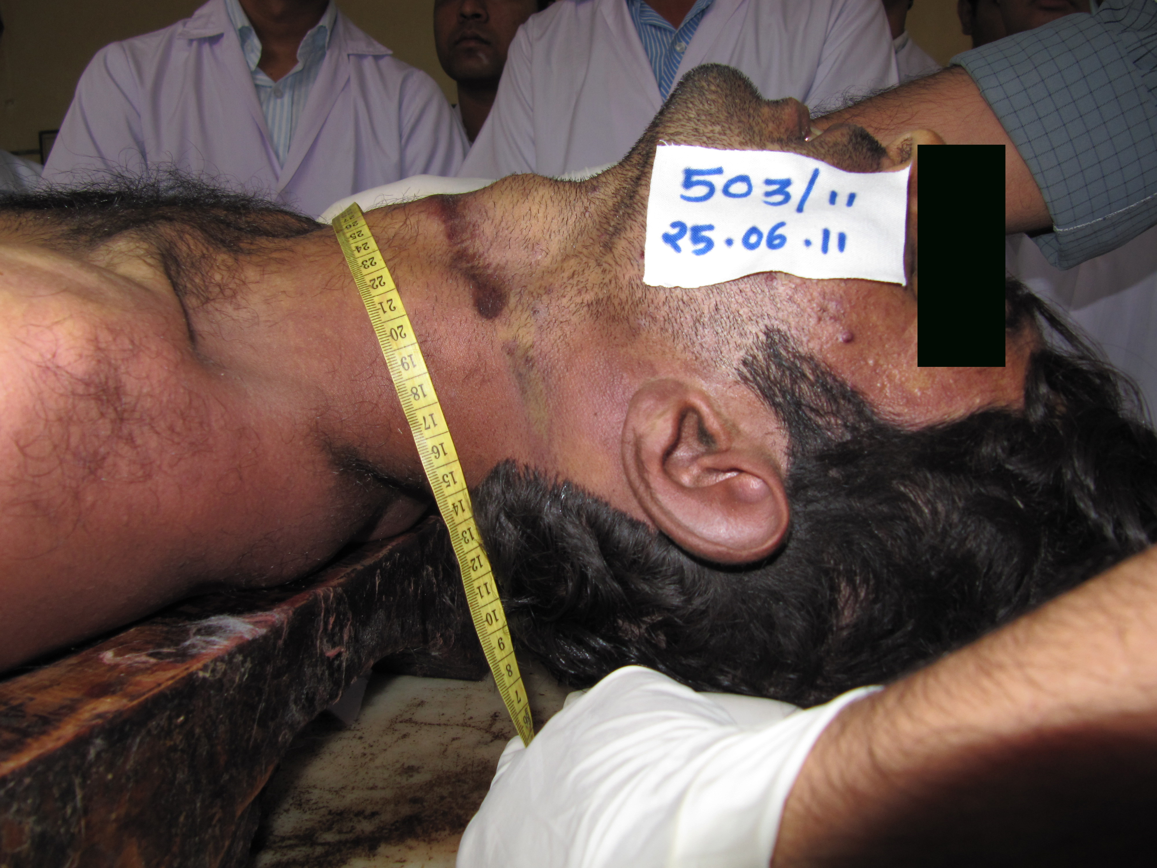 In our experience of thirty five years of witnessing and conducting about fifteen thousand postmortem examinations it is the first time that we observed this type of scarring.